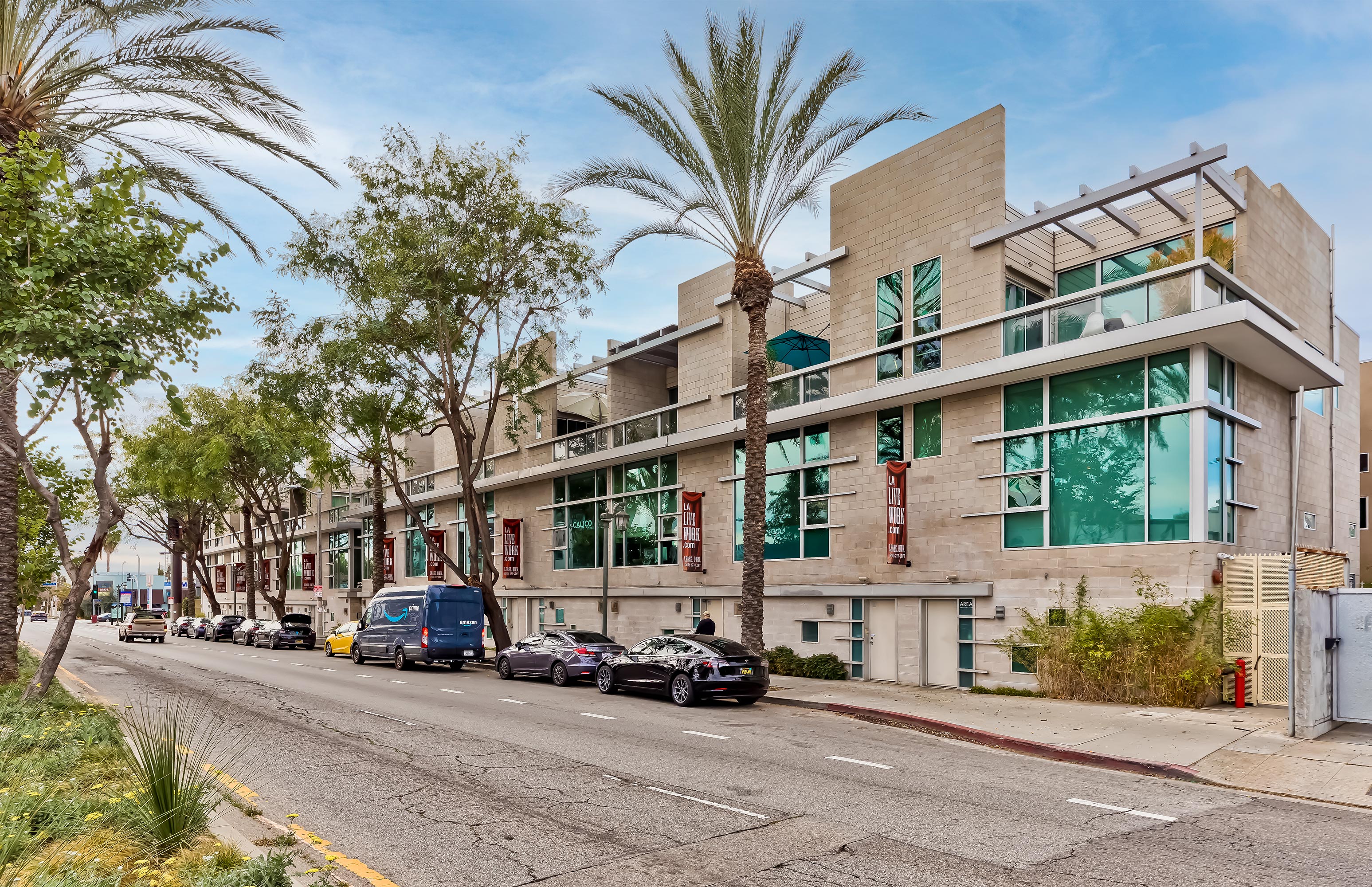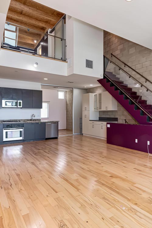 Modern Architectural style 2+2 Townhouse Loft built in 2005. Soaring ceilings, open spaces, central AC, laundry inside, recessed lighting, lots of light and huge windows, large private terrace off of primary suite, huge oversized direct access garage with amazing storage capability. Located on Melrose and Highland, this quieter back unit is an urban lover's dream with convenience to all of the best shopping, dining, entertainment, and culture in LA. Perfect for the creative type or work at home professional. Updated kitchen and baths, hardwood floors, concrete walls, large rooms. Let your imagination and creativity run wild while living in the best part of the city. Complex is gated and offers guest parking and controlled access. Pet may be considered.